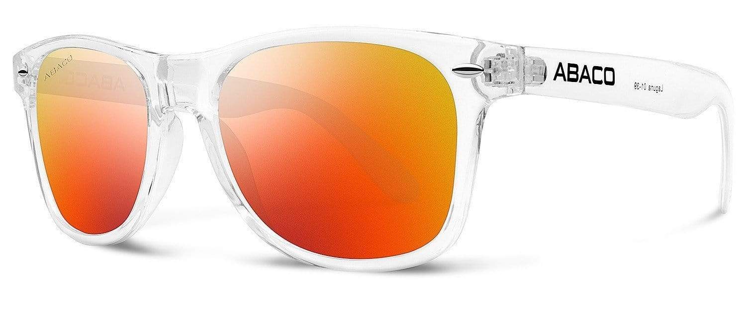 A translucent Clear frame is a trendsetting version of an iconic style. These unisex, universally flattering sunglasses are made of strong, lightweight Polycarbonate, and the lenses provide 100% UV protection from the damaging rays of the sun. The frames feature characteristic rivets at the temples, standard hinges, and they are molded around the ears for added comfort. These sunglasses fit virtually all faces from small to large, and an Abaco Cleaning Cloth Microfiber Pouch is included with each pair, so you can easily keep your new shades clean and safely tucked away when not in use.